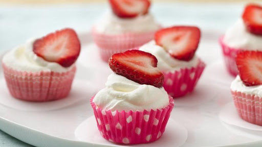 2 Top each with small dollop of whipped topping. Cover with foil or plastic wrap. Freeze at least 1 hour. Top with strawberry half just before serving.