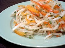 Combine the jicama, carrots, cabbage and onion, cucumber, red pepper and cilantro in large bowl and toss.