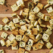 Add dill and parsley; sauté until croutons are lightly browned, about 5 to 8 minutes. Remove skillet from heat; discard garlic clove. When croutons are completely cool, store in a tightly sealed container. Yields about 1/4 cup per serving.