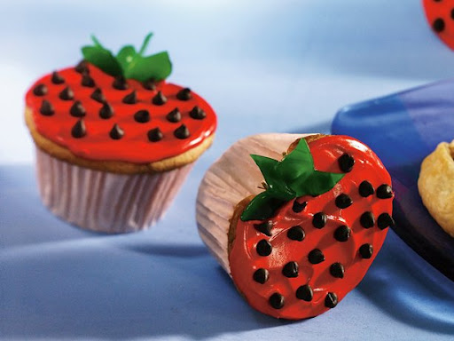 1 Heat oven to 350°F (325°F for dark or nonstick pans). Place paper baking cup in each of 24 regular-size muffin cups. To make strawberry-shaped cupcakes, pinch in one side of each paper baking cup. Insert 1/2-inch ball of foil between liner and muffin cup to hold in place. (See photo.)