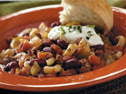 1. In a large skillet, cook beef over med heat until no longer pink; drain. Transfer to a 5 qt slow cooker. Stir in the tomatoes, beans, water, onion, green pepper, vinegar, chili powder, Worcestershire sauce, bouillon and seasonings. Cover and cook on low for 5-6 hours or until heated through.