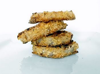 Dip rings in buttermilk mixture, allowing excess to drip back into bowl, then drop into crumb coating, turning rings to coat evenly.