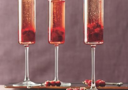 Divide mixture among 4 glasses. Pour prosecco into glasses and serve.