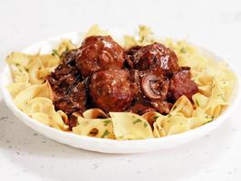 Veal and Pork Meatballs with Mushroom Gravy and Egg Noodles