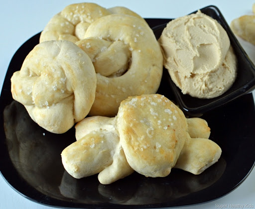 5. Bake in oven at 450 degrees for 10 minutes or less (until pretzels begin to turn brown and are cooked through). Serve with hummus!
