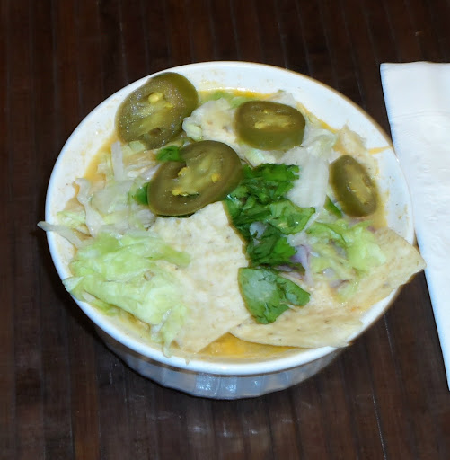 Place chili in bowls arranged on a baking sheet. Top bowls of chili with chips and cheese; place in oven and broil to melt. Top with jalapeño slices, scallions, cilantro, tomatoes and lettuce or other toppings of choice.