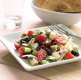 Village-Style Greek Salad with Chicken & Lemon-Mint Vinaigrette