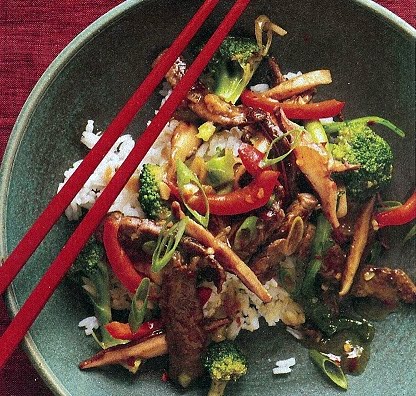 Beef with Broccoli, Bell Pepper and Mushrooms