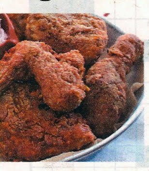 4.) Fry the chicken, 2 pieces at a time, in the hot oil until deep golden brown, 30 seconds to 1 minute. Drain on the wire rack and serve immediately.