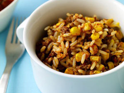 2 Stir in taco seasoning mix, water, salsa and corn. Heat to boiling; stir in rice. Boil 1 minute; remove from heat. Cover; let stand 8 minutes.