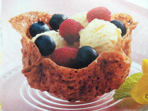 In a small saucepan, melt butter over low heat. Stir in brown sugar and corn syrup; cook and stir till mix comes to boil. Remove from heat. Stir in flour. Fold in pecans and vanilla. Drop by tablespoonfuls 3" apart onto parchment paper-lined baking sheets. Bake at 325 for 8-10 mins. or till golden brown. Cool for 30-60 seconds; peel cookies off paper. Immediately drape over inverted 6 oz custard cups; cool completely.