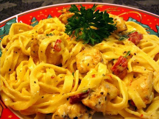 Reduce heat add green onion, heavy cream, tomatoes, basil, salt, garlic powder, black pepper and heat through.