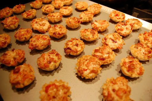 Easy and tasty appetizer! Baked pastry cups filled with Rotel, bacon bits, shredded Swiss cheese and a lil mayo. Delicious!
