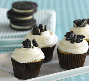 6. Once cupcakes have cooled, spread with frosting, about 2 teaspoons for each. Top with cookie crumbs, if desired.