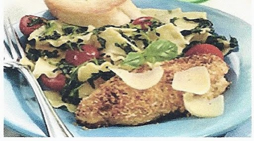 3. In 12-inch skillet, heat 1/4 cup oil over medium-high heat. Cook and stir 1 clove garlic in oil 1 minute or until tender. Stir in spinach and 1/2 teaspoon seasoned salt. Cook 2 to 3 minutes, stirring frequently, until spinach is cooked. Add noodles, tomatoes and basil; cook 1 to 2 minutes, stirring occasionally, until hot. Serve with chicken. Garnish with fresh basil sprigs and shaved Parmesan cheese, if desired