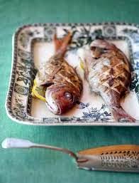 Score snapper with crosswise cuts on each side of skin. Sprinkle 1/4 tsp pepper and salt evenly inside cavities, arrange lemon slices in cavities. Wrap with foil coated in cooking spray. Place on grill, grill 15 mins, turning once. Let stand 5 mins.