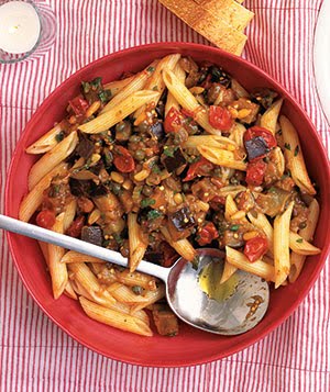 4.Meanwhile, cook the penne according to the package directions. Toss with the remaining oil, let cool, and cover. Combine the eggplant with the pasta before serving.