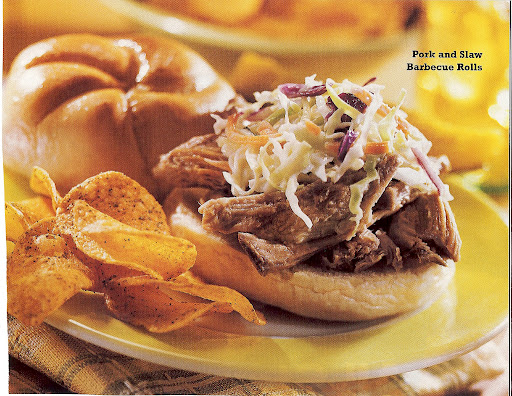 3. Transfer meat to a cutting board; reserve cooking juices. When cool enough to handle, cut meat off bones and coarsely chop. In a medium bowl combine meat and as much of the juices as desired to moisten. arrange meat on bottoms of rolls. Replace roll tops. Serve with coleslaw.