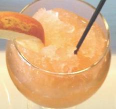 Chop the frozen peaches. Mix peaches, lemonade, vodka and 6 to 8 ice cubes in blender. Mix well, pour, enjoy.