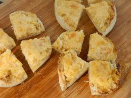Mix all ingredients together and spread on English muffins. Cut into bite-size pieces, about 1/8-inch cubes, and place on cookie sheet. Sprinkle generously with parmesan cheese. Bake at 350°F for 15 to 20 minutes; then place under broiler and broil until brown.