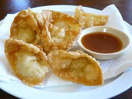 Put ½ teaspoon mixture in center of each wonton wrapper. Fold as directed on package, sealing with a little egg yolk. Deep fry (375*) until slightly browned. Serve hot with hot mustard and sweet & sour sauce.