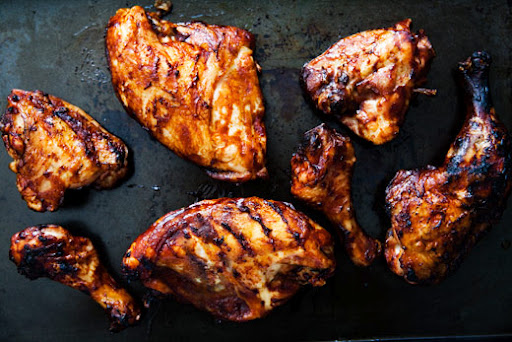 4. Baste chicken with barbecue sauce of choice and cook for about 10 more minutes, turning and basting liberally numerous times with sauce, until sauce caramelizes nicely and chicken is done.