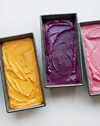 - 1 1/2 pounds frozen strawberries, mangoes or blueberries