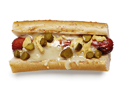 Melt sliced brie on grilled hot dogs; serve on sliced baguette and top with chopped cornichons and dijon mustard.