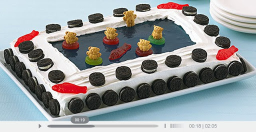 Fun Idea: Insert bite-size fish-shaped and octopus-shaped chewy fruit snacks into gelatin "pool" before refrigerating.
