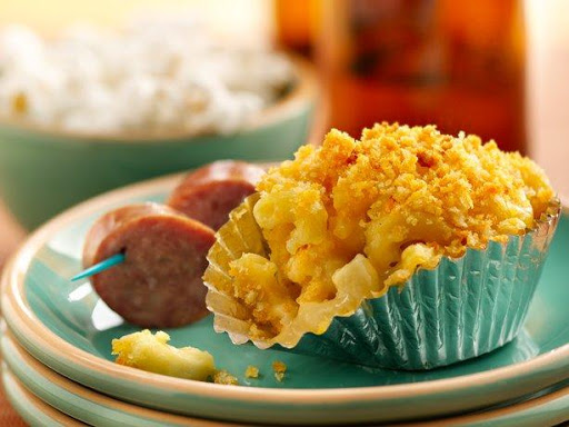 2 While macaroni is cooking, in 3-quart saucepan, melt butter over medium heat. Cook and stir onion in butter 2 to 3 minutes or until softened. Stir in flour; cook and stir 1 minute. Gradually stir in half-and-half, mustard, pepper sauce and salt; heat until thickened and bubbly, stirring constantly, about 5 minutes. Stir in beer. Remove from heat; let stand 2 to 3 minutes. Stir in cheese until melted. Add sausages to cooked macaroni. Stir in cheese sauce. Spoon macaroni mixture into casserole.