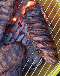 Never grill a thick steak like hanger over high heat; it will burn long before it's cooked throug