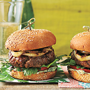 Burgers with Blue Cheese Mayo and Sherry Vidalia Onions