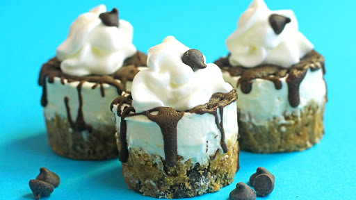 Just before removing cheesecakes from the freezer, place chocolate chips and coconut oil in a microwave safe bowl. Microwave in intervals of 20 seconds, until chocolate is completely melted. Whisk together mixture until smooth.