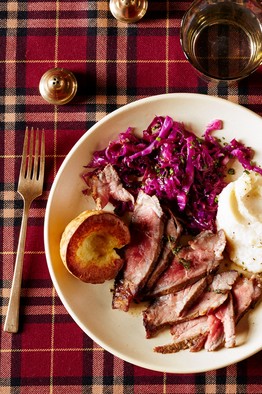 Distribute steak, purée and cabbage among four plates. Serve with popovers straight from oven.