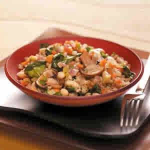 Stir in the spinach, beans, pepper and barley; cook and stir until spinach is wilted. Stir in parsley. Yield: 5 servings.