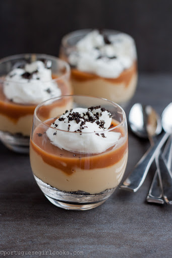 6. Pour 1/2 cup pudding over crust in each cup. Cover and chill for 4 to 5 hours.