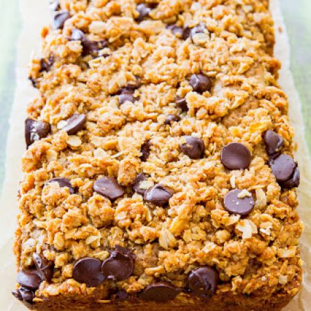 Make the streusel first by combining the oats, brown sugar, cinnamon, and flour together in a medium bowl. Cut in the cold butter with two knives or a pasty cutter (preferred) - or you may use your hands. Mix until the streusel resembles coarse crumbs. Stir in the chocolate chips with a spoon. Set aside.