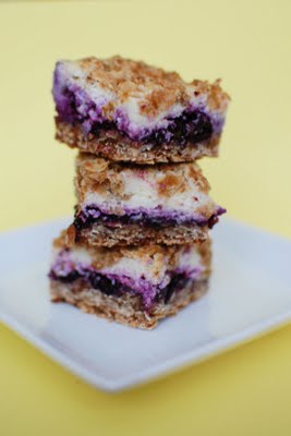 In bowl of electric mixer, beat cream cheese until smooth. Add sugar, vanilla and salt and beat well. Add egg and mix until combined. Pour cheesecake filling over blueberry filling.