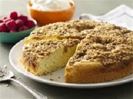 In medium bowl, mix coffee cake ingredients until blended. Spread in pan. Sprinkle with streusel.