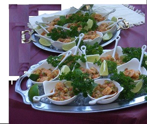 Shrimp with sauce may be served in a large bowl. For individual servings serve in Chinese ceramic spoons, appetizer bowls or small martini glasses.