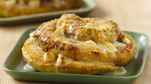 1 Heat oven to 350°F. Line large cookie sheet with cooking parchment paper or lightly spray with Crisco® Original No-Stick cooking spray. 2 Remove dough from can; do not separate dough into rolls. Reserve icing. Unroll cinnamon roll dough on waxed paper. Sprinkle dough evenly with 1/4 cup of the graham cracker crumbs, lime peel and white chips; lightly press chips into dough. Reroll dough; using perforations, separate into 5 rolls. Place, cut side up, two inches apart on cookie sheet. 3 Bake 12 to 17 minutes or until golden brown. Cool 5 minutes. 4 Meanwhile, in small bowl, combine reserved icing and lime juice; stir until well blended. Drizzle icing over warm rolls. Sprinkle tops with remaining graham cracker crumbs. Garnish with lime slices. Serve warm.