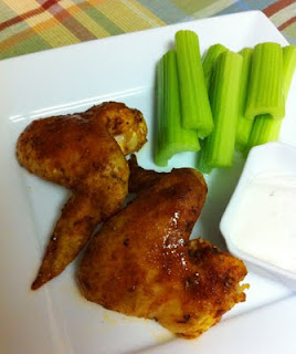 While chicken cooks, heat the remaining hot sauce until warm. Toss the hot sauce with the chicken and arrange on a platter. Serve with celery and blue cheese dressing for dipping.