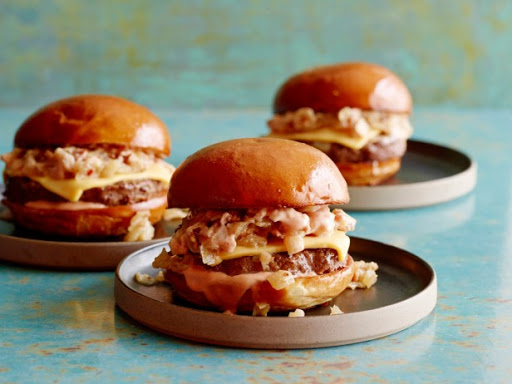 To assemble the burgers, dress both sides of each bun with 1 tablespoon of the Special Sauce. Place the patties on the bottom buns and top each burger with 2 to 3 tablespoons of the warm Bacon Jam. Place the top bun on each burger, slice in half, and serve immediately.