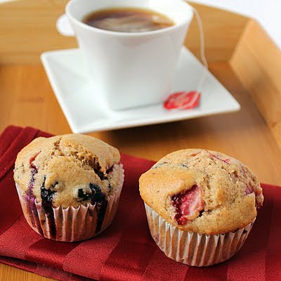 Reduced Fat Blueberry-Strawberry Muffins