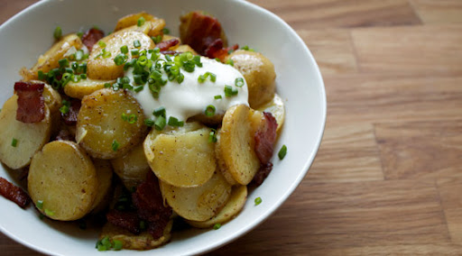 • 1 pound fingerling potatoes, sliced into thin rounds