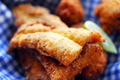 - 1 Pound Catfish Fillets, cut into inch-wide strips