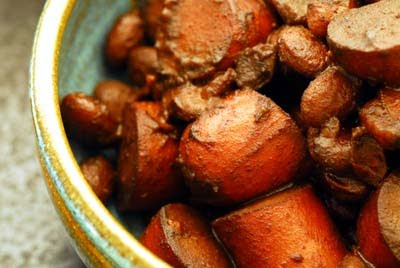 9. Take pot out of the oven, and taste beans. Make taste adjustments with mustard powder, chile powder, and molasses if necessary. The beans should be tender at this point. If they're not, cook covered a while longer until they are.