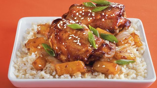 3. Cover; cook on Low heat setting 5 hours or until chicken is tender. Sprinkle with onions and sesame seed. .Serve this Asian-inspired chicken dish on a bed of brown or white rice. The extra sauce will taste great drizzled over the rice