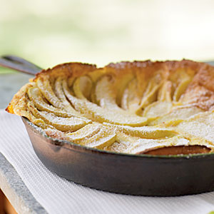 4. Bake at 425° for 15 minutes. Reduce oven temperature to 375° (do not remove pancake from oven); bake an additional 13 minutes or until center is set. Carefully loosen pancake with a spatula. Gently slide pancake onto a serving platter. Sift powdered sugar over top. Cut into 6 wedges; serve immediately.