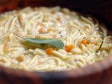 In a large pot, heat up the extra-virgin olive oil and saute the garlic, onion, carrot, celery, and pancetta for 5 minutes. Add the fresh sage and rosemary, allowing the olive oil to absorb the flavors of the herbs. Season with salt and pepper to taste.
